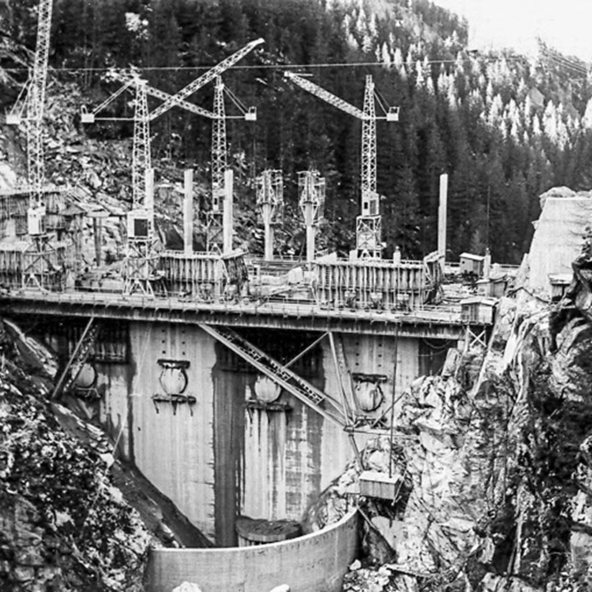 Bereits im Sommer 1956 waren die Vorarbeiten für den Bau der Werke (Sondierungen, Zufahrtsstrassen, Baustromleitungen usw.) in Angriff genommen worden.